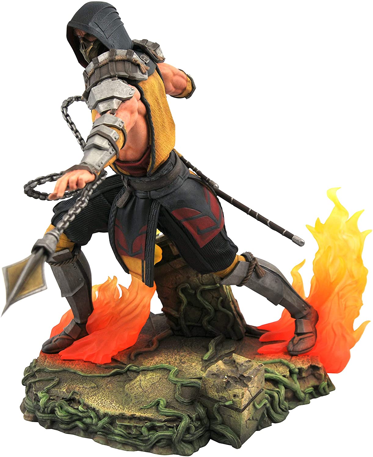A Diamond Select Toys release! Get over here! From the hit Mortal Kombat video game franchise, wearing his outfit from Mortal Kombat 11, Scorpion launches his kunai at an opponent in this dynamic, deluxe Gallery Diorama. Cast in high-quality PVC, it features detailed sculpting and paint applications, and comes packaged in a full-color window box. Designed by Nelson X. Asencio, sculpted by Salvador Gomes.